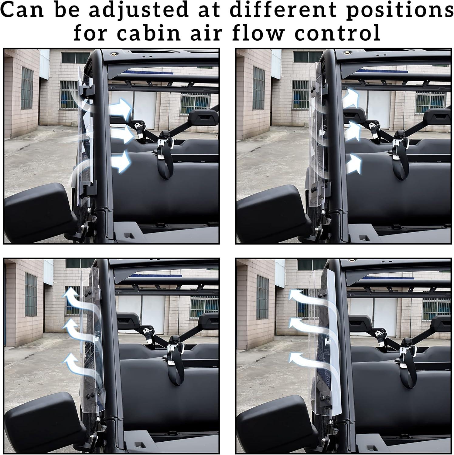 Can be adjusted at three different positions for cabin air flow control when full windshield is installed