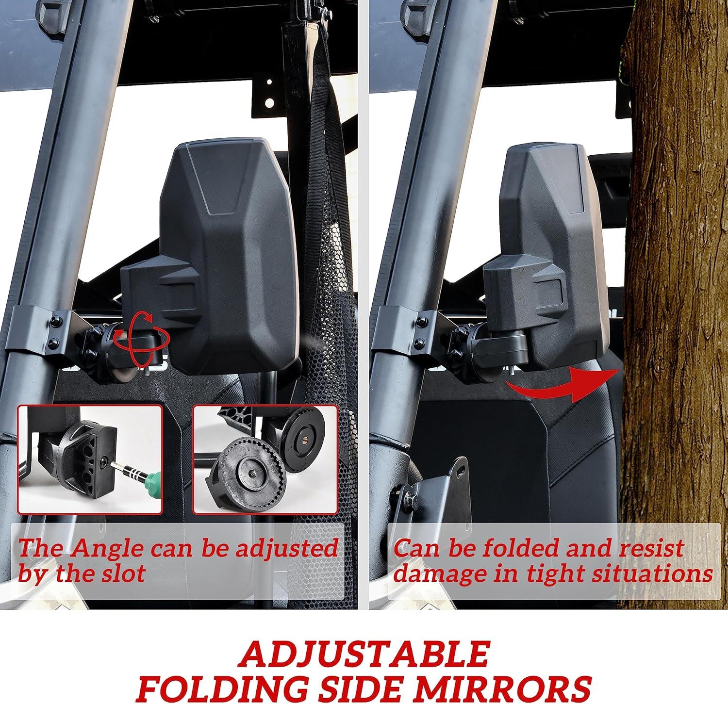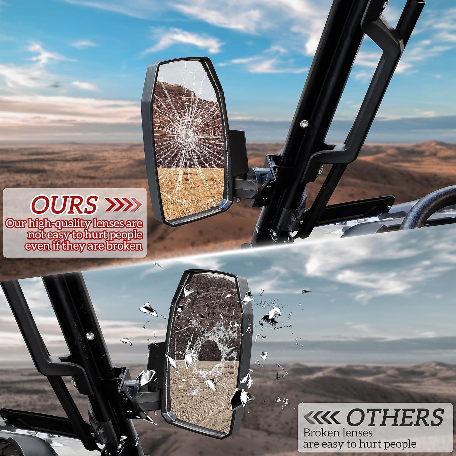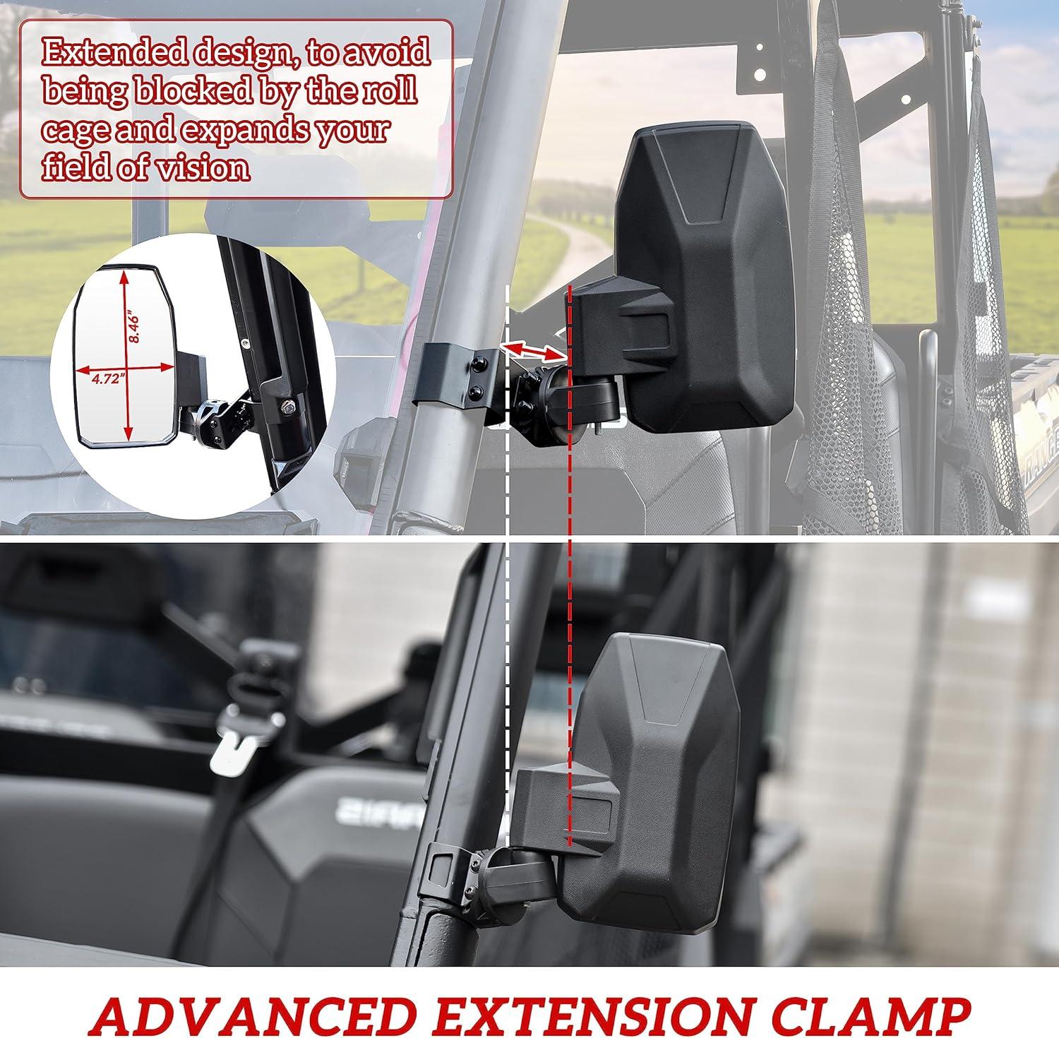 【WIDE-FIELD】UTV side mirrors are 8.4 inches high and 4.7 inches wide, convex mirror surface, offers increased visibility, ensure your driving safety better, the Angle can be adjusted by the slot, and adjustable for different sized riders