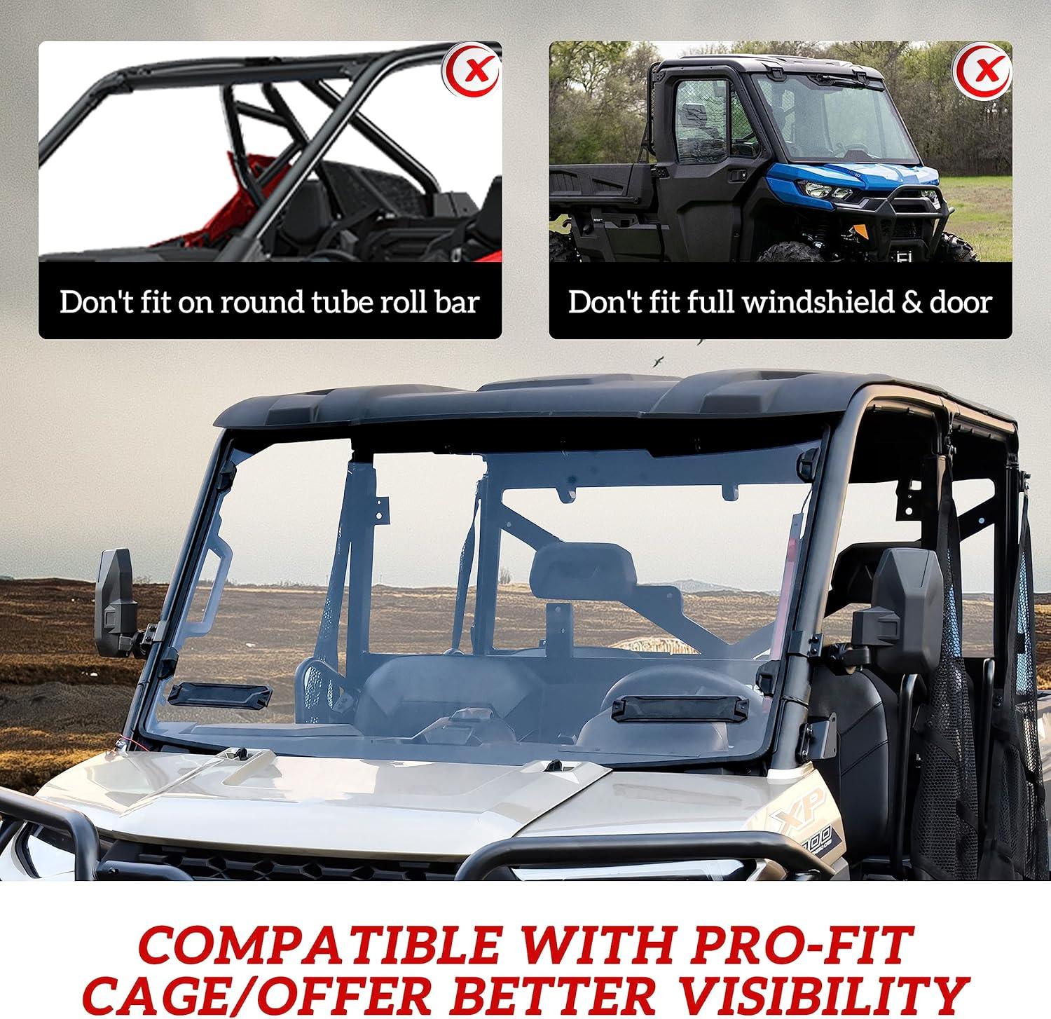 【FITMENT】Compatible with Polaris Ranger 1000 2015-2024, Ranger XP 1000 2017-2024(Except NorthStar Edition Ultimate/Premium), Ranger 570 mid-size 2015-2021, Ranger 500 2017-2023, Ranger XP 900 2013-2019 w/Pro-Fit channel shaped bar; Compatible with Polaris General 1000/ XP 1000 2016-2023(NOT FIT 2022 General XP 4 1000); fit for Can-Am Defender, Maverick Trail w/channel shaped bar. NOTICE: WILL NOT FIT FULL DOOR & WINDSHIELD. WILL NOT FIT ON ROUND TUBE ROLL BAR (Pls. refer to the compatible list