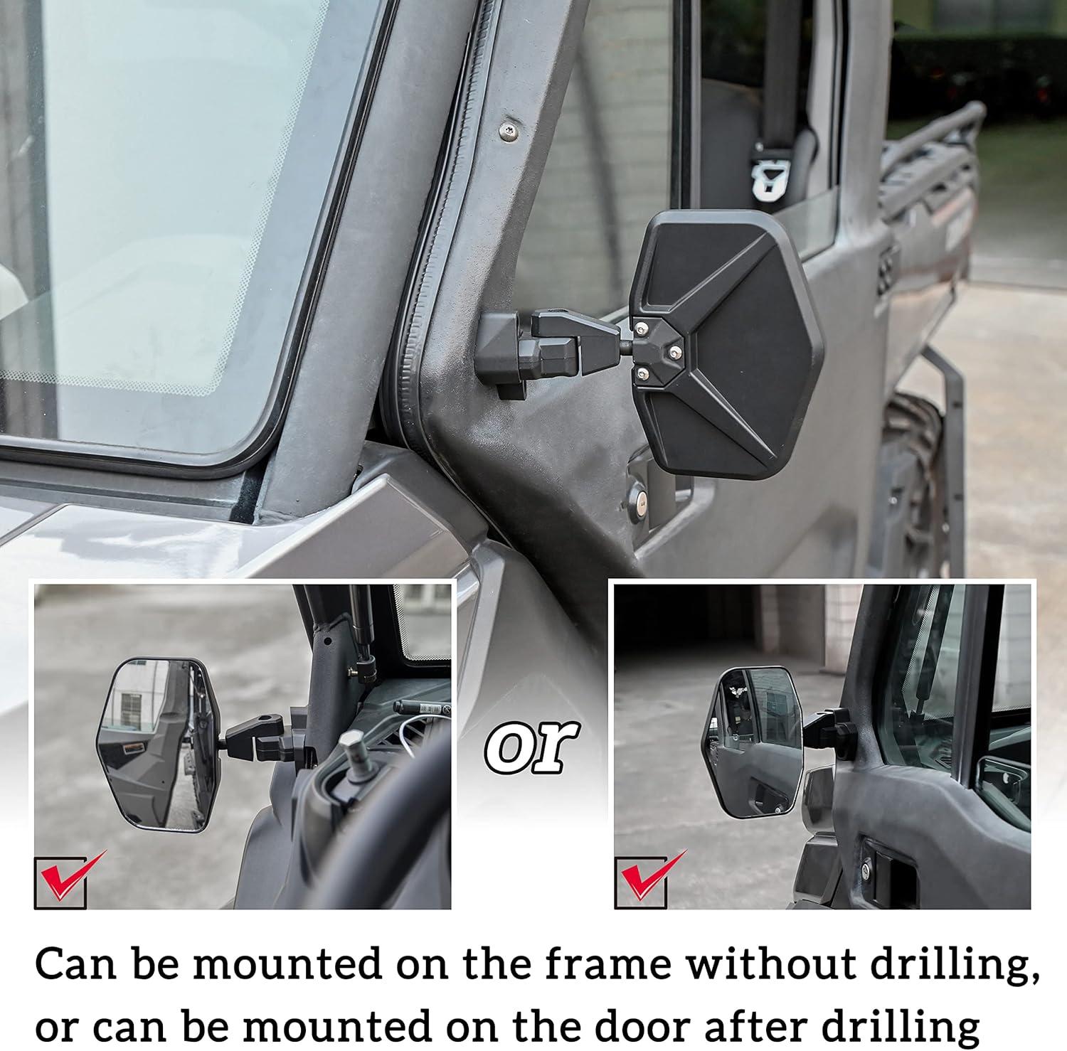 Compatible with Can-Am Defender / Defender Max HD5 HD7 HD8 HD9 HD10 2016-2025 (Not fit for 2022+ Can-Am Defender with hard door); Fit Driver or Passenger Side, can be mounted on the frame without drilling, or can be mounted on the door after drilling (Please refer to the installation manual in the listing of Product guides and documents)