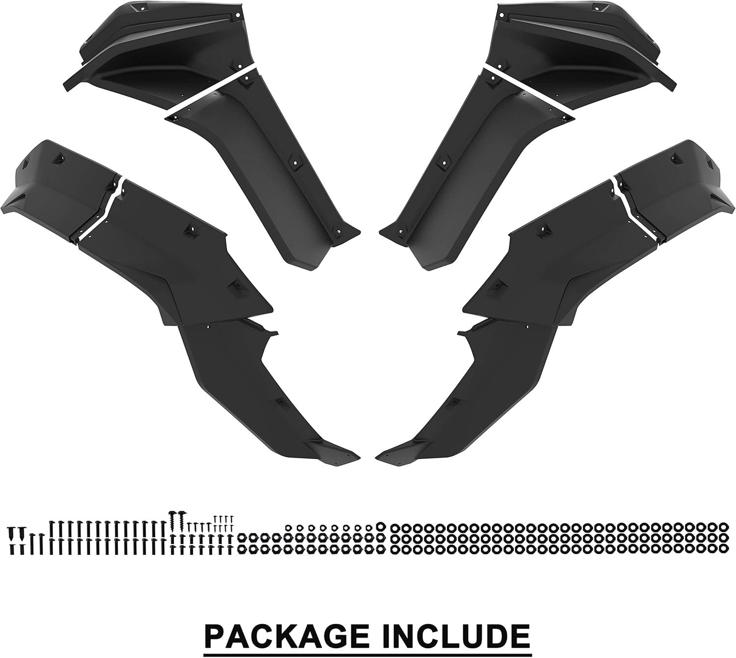 Easy to install; Package include: Front and Rear combination fender flares (12pcs) with mount hardware; Notice: Please refer to the updated installation manual (PDF version) in the Product guides and documents in the listing (Please refer to the video in the listing before your installation)