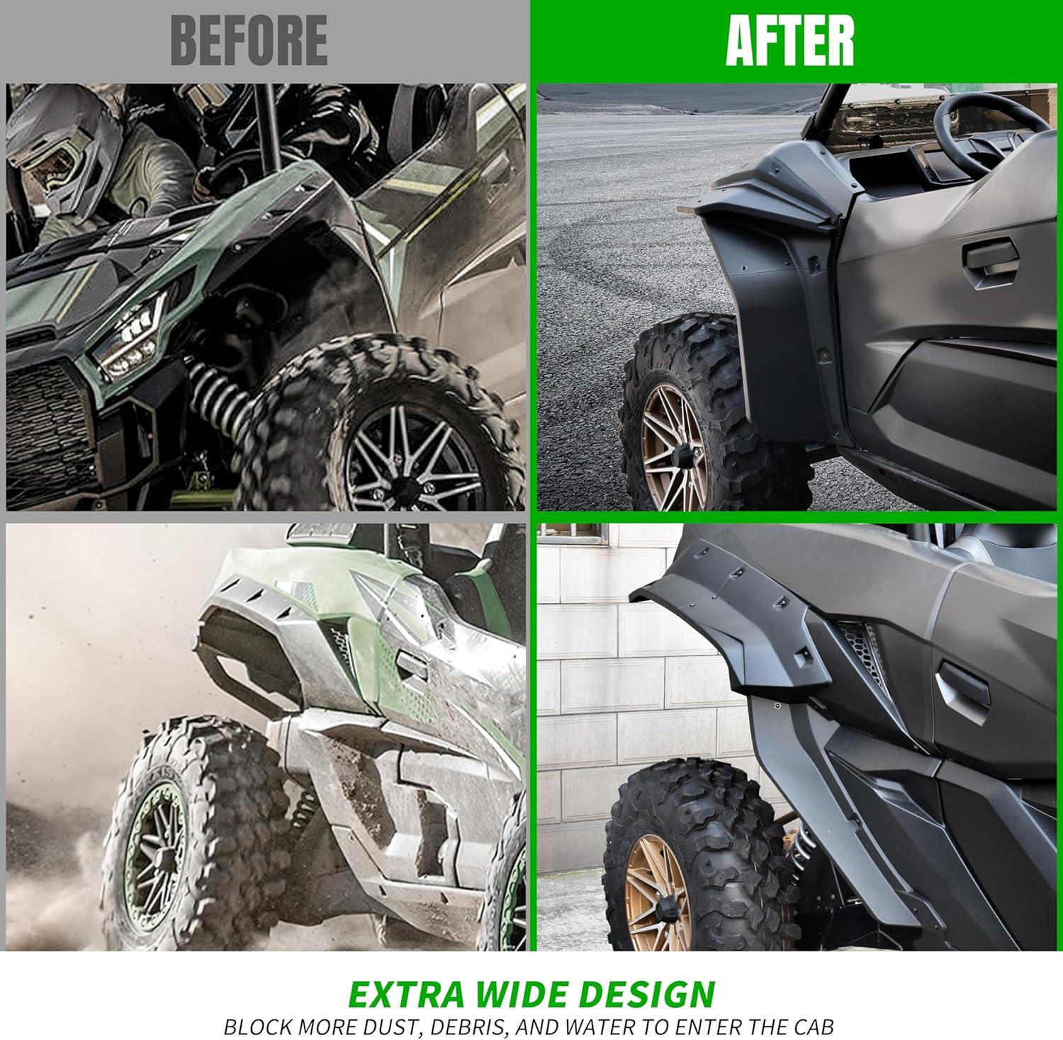 SAUTVS XXL Wider Fender Flares for Kawasaki Teryx KRX4 1000, Front Rear Extended Mud Flaps Mud Guards Extension for Kawasaki Teryx KRX 4 1000 2023 2024 2025 Accessories