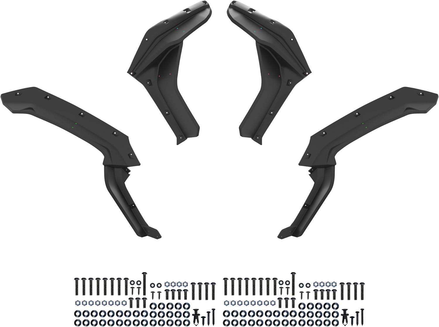 Easy to install; Package include: Front and Rear combination fender flares with mount hardware and installation manual. Need some drills during installation (Please refer to the installation video before your installation)